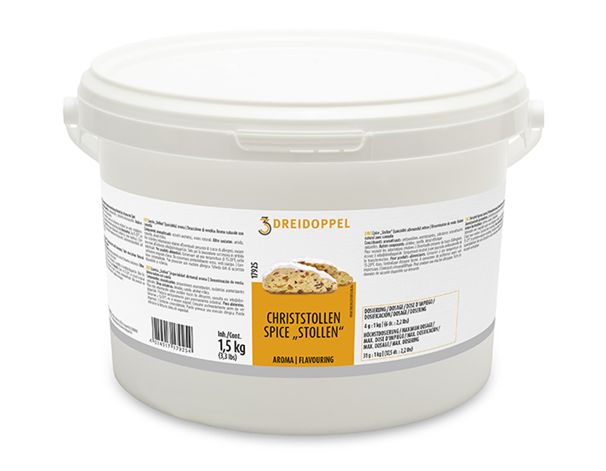 Beschreibung: Typisch weihnachtliches Gewürzaroma, mit Noten von Vanille, Zimt, Kardamom und Zitrusfrüchten. Speziell abgestimmt für schwere Hefeteige. Empfehlung für Christstollen und Lebkuchen.