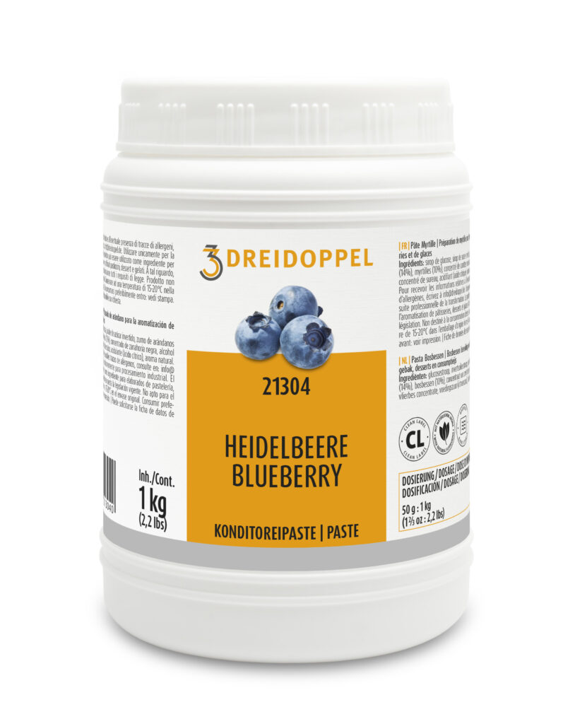 Beschreibung: Heidelbeerzubereitung mit typischem Waldbeerencharakter. Für 100g Paste werden ca. 123g Waldbeeren verarbeitet